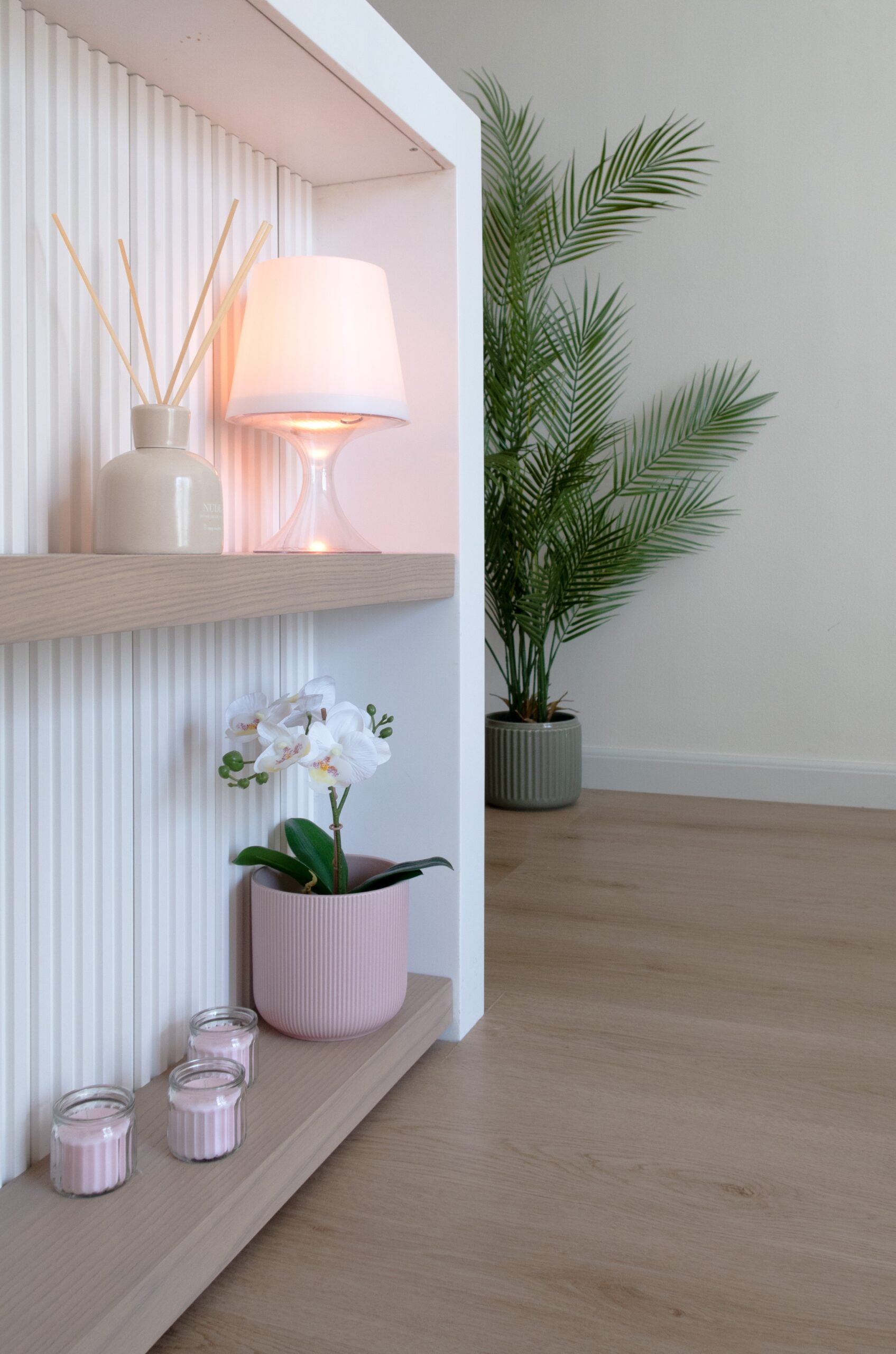 Across the apartment, the original flooring was replaced with wooden flooring, introducing warmth, continuity, and a more refined residential feel.